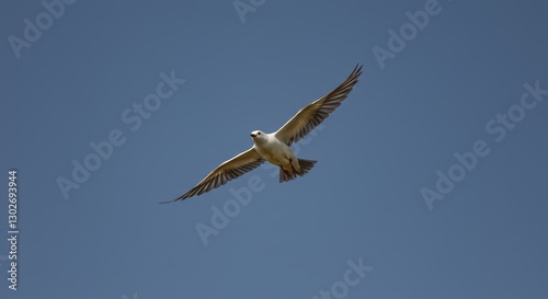 © Firman Dasmir, Obraz premium Seagull soaring through a clear sky, wings spread wide with ample copyspace