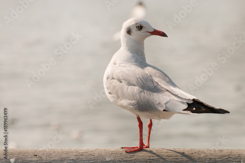 © nuruddean, Fototapeta premium seagull stand and looking on the sea.