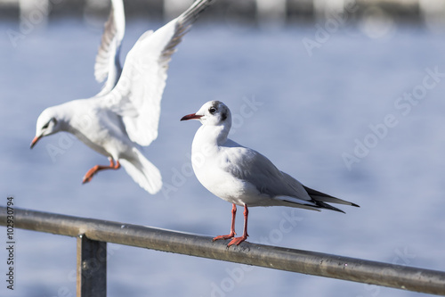 © ihorga, Obraz premium Seagull standing on a metal railing