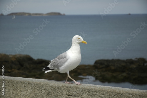 Fototapeta premium Seagull standing on a wall.