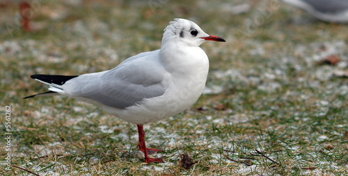 Fototapeta premium Seagull standing on the frozen ground.