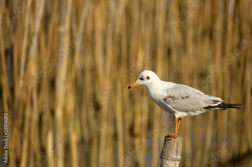 © nuttakit, Fototapeta premium Seagull standing on the timber