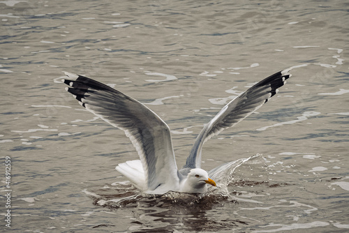 © Paul, Fototapeta premium Seagull taking a dip in the sea