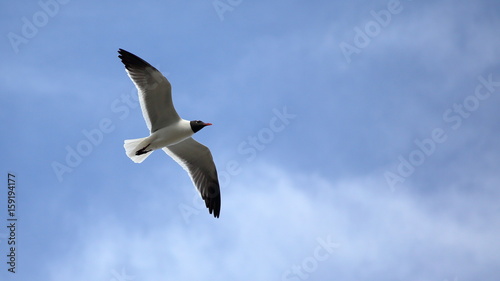 © John Wijsman, Obraz premium Seagull with wings spread against a blue sky