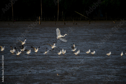 © joesayhello, Obraz premium Seagulls at bangpu recreation center samut prakan thailand