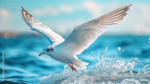 © Nadhera, Obraz premium seagulls catching fish on the surface of the sea