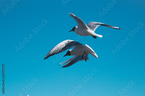 © Dmitrii, Obraz premium seagulls fly along the coast in search of food