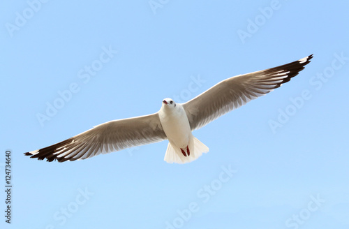 © Passakorn, Fototapeta premium Seagulls fly in the sky at Bang Pu,Thailand.