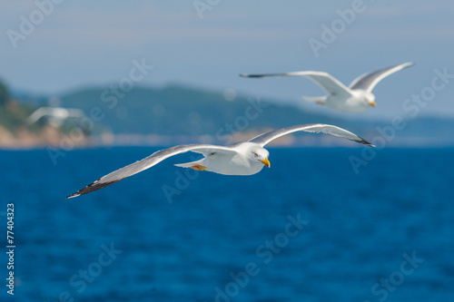 © chirnoagarazvan, Fototapeta premium Seagulls flying among blue sky