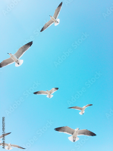 © Martin Hossa, Obraz premium Seagulls flying in blue sky