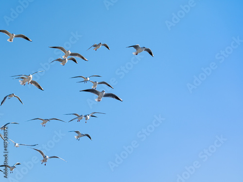 © DIGITALSHAPE, Fototapeta premium Seagulls flying in the sky