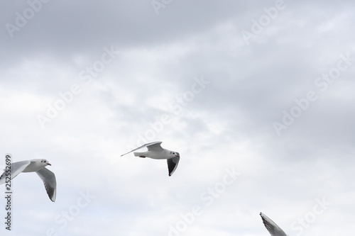 Obraz premium Seagulls in cloudy weather