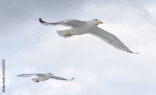 Obraz premium Seagulls in cloudy weather