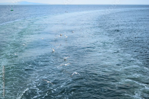© Constantin, Naklejka premium seagulls in flight on the sea. Greece, Aegean sea
