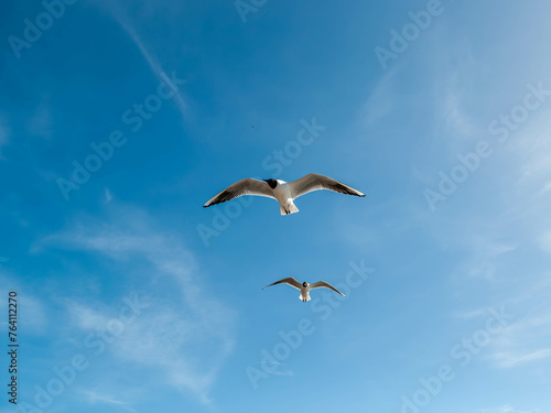 © Дмитрий Пилецкий, Obraz premium Seagulls in the blue sky