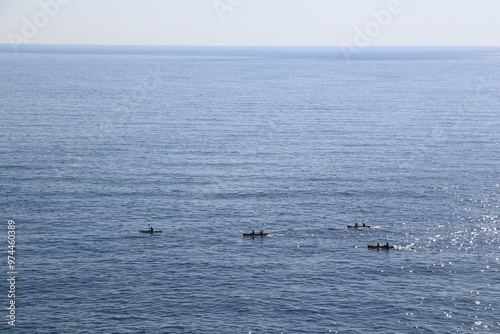 © nataliyapylayeva, Fototapeta premium seagulls in the sea