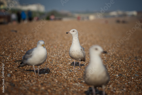 Obraz premium seagulls on pebbly beach