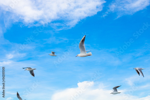 Fototapeta premium Seagulls on the cloudy sky