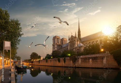 © Givaga, Obraz premium Seagulls over Notre Dame