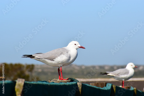 © A Ballantyne, Obraz premium Seagulls perched on a pole