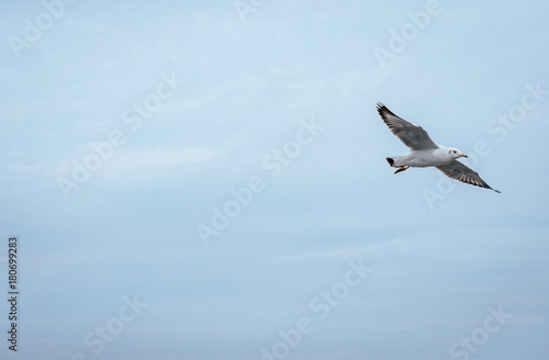 © gballgiggs, Fototapeta premium Seagulls single flying over the sea
