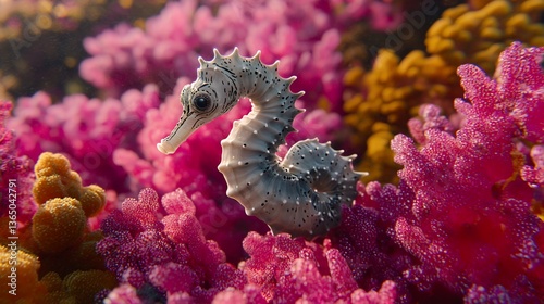© mafaza, Obraz premium Seahorse amidst vibrant coral reef, underwater scene