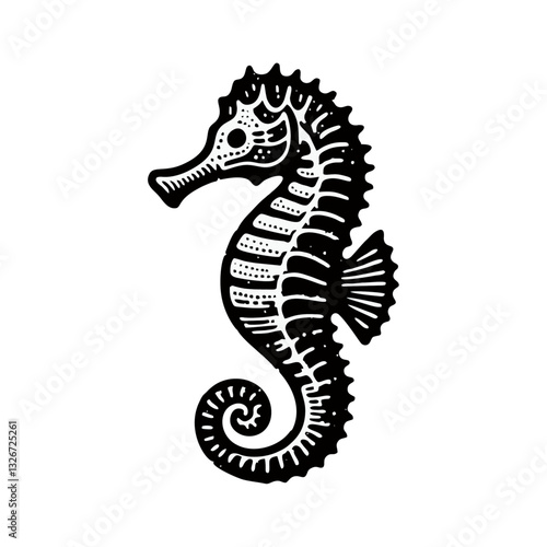 © JimzStd, Fototapeta premium Seahorse engrave logo icon design illustration
