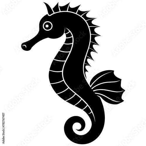© SK kobita, Naklejka premium seahorse head mascot,seahorse silhouette,vector,icon,svg,characters,Holiday t shirt,black seahorse drawn trendy logo Vector illustration,seahorse on a white background,eps,png
