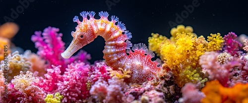 © UMI, Obraz premium Seahorse in vibrant coral reef, underwater scene