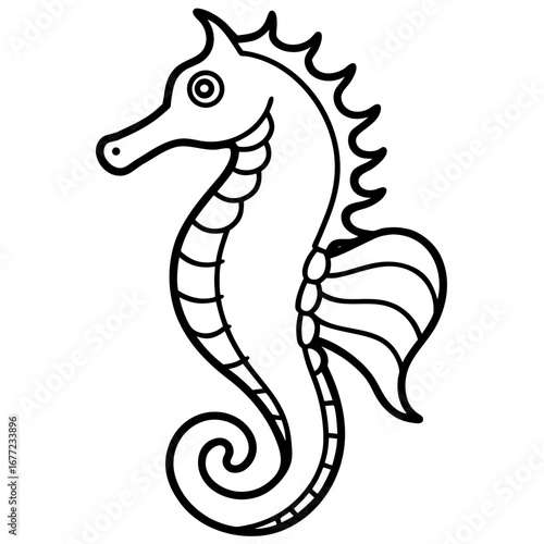 © Zahedul, Fototapeta premium Seahorse line art vector