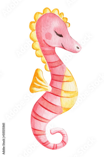 © Hanna, Fototapeta premium Seahorse on an isolated white background. Watercolor drawing