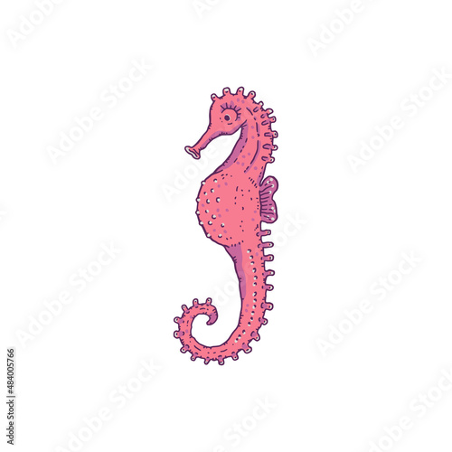 © Marina Tab, Obraz premium Seahorse pink. Vector wild ocean animal underwater life doodle line isolated illustration.