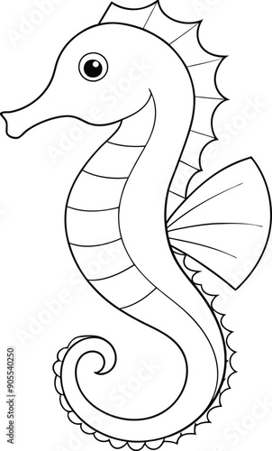 © MdHabibur, Fototapeta premium Seahorse vector line drawing