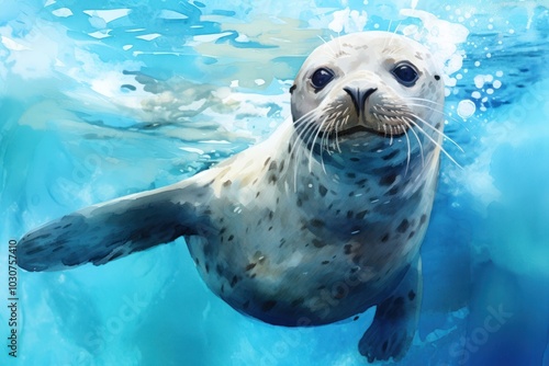 Fototapeta premium Seal animal mammal blue, digital paint illustration.