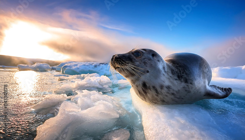 Obraz premium Seal Awakens and Slides Off Icy Bed