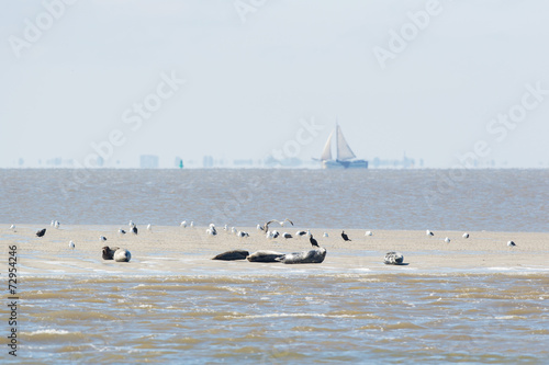 © Ivonne Wierink, Naklejka premium Seal in wadden sea