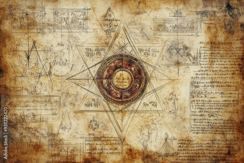 © Sidewaypics, Naklejka premium Seal of Solomon Ancient Manuscript Judaism, Islam Religion Spiritual Symbol