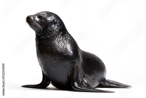 © saran, Fototapeta premium Seal sits looking up and to the side.