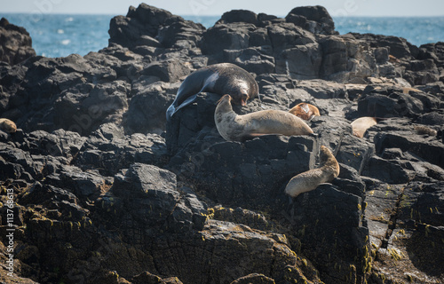 © boyloso, Fototapeta premium Seals at the rock island the biggest seals colony near Phillip island of Victoria state of Australia.