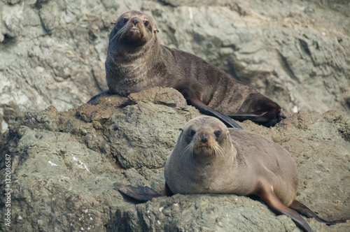 Fototapeta premium Seals in New Zealand sitting on rocks