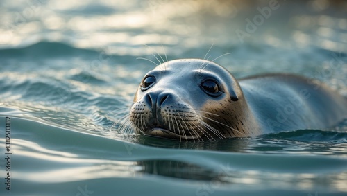 Fototapeta premium Seals swimming in their natural environment. The earless seals, known as phocids or true seals, represent one of the three primary groups of mammals in the seal lineage, Pinnipedia.
