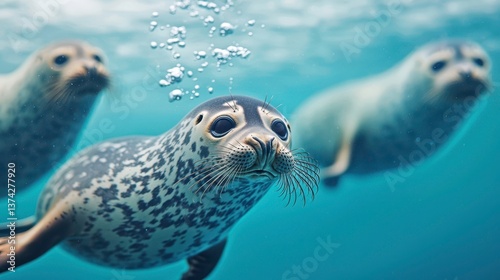 Fototapeta premium Seals Underwater, Sea Life nature harbor seal