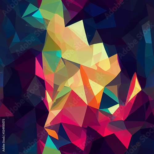 © Ninio, Obraz premium Seamless abstract colorful background with low poly triangles