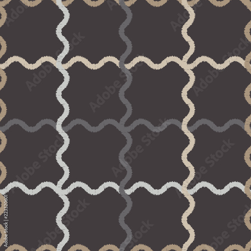 © lazininamarina, Naklejka premium Seamless abstract geometric pattern. Wave. Mosaic texture. Brushwork. Hand hatching. Scribble texture. Textile rapport.