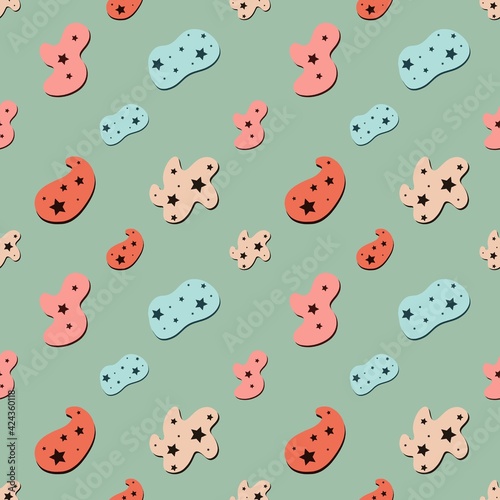 Fototapeta premium Seamless abstract geometric pattern with colourful shapes on a green background