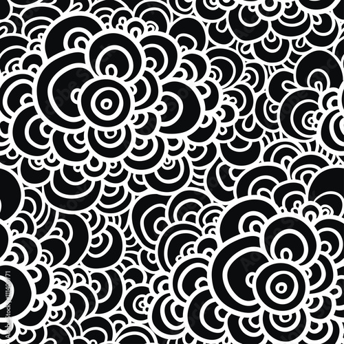 © svaga, Obraz premium Seamless abstract hand-drawn pattern, clouds background. Black-white.