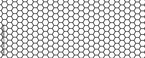 © Deep Earth , Naklejka premium Seamless Abstract Hexagon Pattern in Black and White: A Modern Geometric Vector Design Reflecting Futuristic Technology Aesthetics.