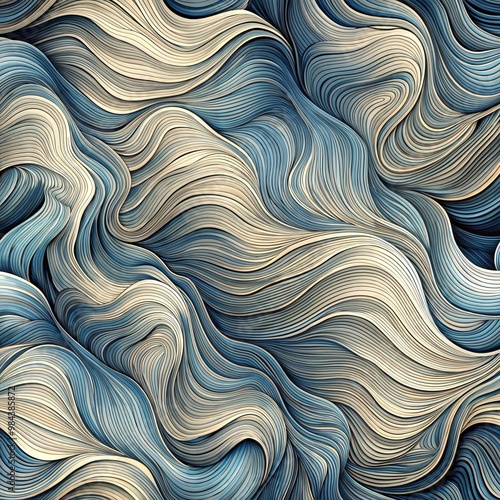 © Madlen Gray, Obraz premium Seamless abstract pattern of flowing waves in blue and beige representing artistic design concept