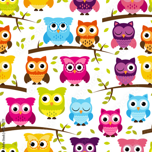 © pinkpueblo, Obraz premium Seamless and Tileable Vector Owl Background Pattern