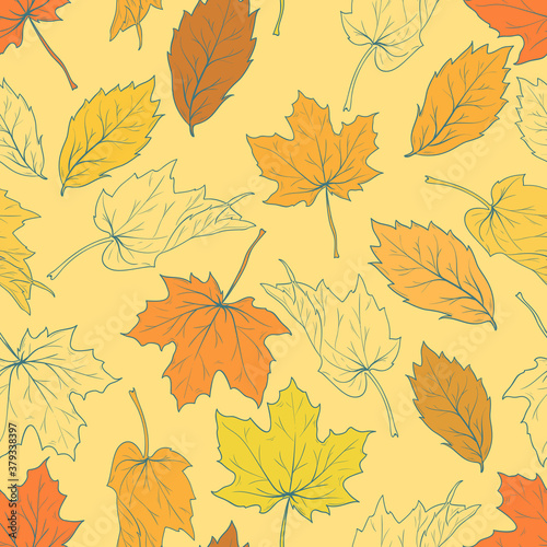 Obraz premium seamless autumn pattern with falling leaves